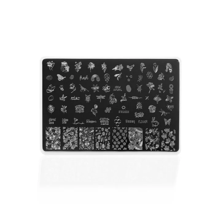Sunce, cvijeće, leptiri i drugi proljetni motivi — sada sve to možete imati na svojim noktima u tren oka! SPRING 02 šablona za štambiljanje (stamping plate) je praktičan alat za kreiranje kohezivnih, raznolikih kompozicija koje će dodati jedinstven dodir vašem dizajnu noktiju.